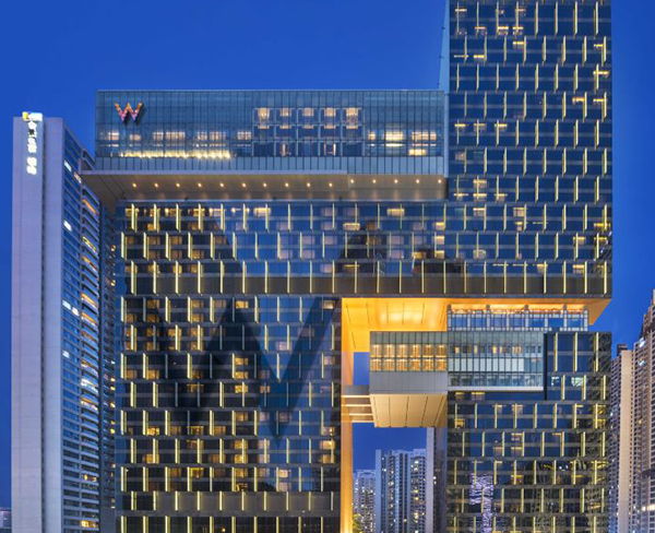平安中心-深圳柏悅酒店,酒店核心區位于33-45層,空中大堂在33層。